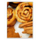 Cannelle en poudre et bâton avec des mini rouleaux de cannelle cuits sur une plaque blanche
