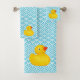 Ensemble de canards en caoutchouc - Ensemble de serviettes de salle de bain - Motif Vagues bleues