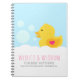 baby shower thématique ? Le Carnet de Baby shower pour filles en caoutchouc Ducky est un choix adorable pour les baby showers pour filles. Elle présente un canard jaune doux avec un coeur rose sur son aile entouré de bulles de bain. Ce carnet est parfait pour les amis et la famille à signer comme livre d'or. N'oubliez pas de faire cravate au thème de la fête et de coordonner les produits conçus par Enchantfancy Design Company.