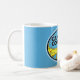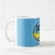 Un autocollant de voyage vintage de Cape Cod Massachusetts réutilisé sur une tasse à café. Celui-ci a un arrière - plan bleu. Nous en avons un autre sur une tasse blanche.