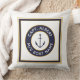 Capitaine personnalisée avec votre nom et nom de bateau nautique ancor logo carré coussin. Symbole de cercle classique avec ancre et champs de texte à l'intérieur d'une bordure carré extérieure en bleu marine, blanc et or sur un arrière - plan blanc.
