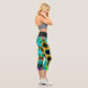 Ces leggings psychédéliques présentent un motif kaléidoscope asymétrique orange, bleu et noir brillant.