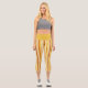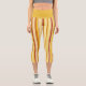 Ce leggings à la mode capris comporte une haute taille mandarine et un motif à rayures verticales rouges grenat et mandarin.