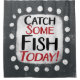 "Catch some Fish Today" est un design de texte mignon en gris avec du texte noir et rouge. Il est installé en forme d'accent blanc et de mignons pois blancs l'entourent.