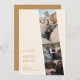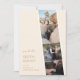 Présentant notre fascinant mariage "Capture Love" Save the Date Card, un mélange enchanteur de nostalgie du stand photo et d'esthétique contemporaine. Ce design unique résume l'essence de votre voyage ensemble, invitant les proches à marquer leur calendrier pour votre journée spéciale. L'arrière - plan dégage un air d'allure vintage, qui rappelle les bandes classiques des cabines de photos qui renferment des souvenirs chéris. Les tons modernes d'ivoire et d'or forment le fondement de cette palette de couleurs tendance, évoquant les sentiments de romantisme et d'intemporalité. Ces teintes s'entrelacent gracieusement, créant un cadre harmonieux qui accentue le point central de la carte. Au premier plan, un agencement astucieux de vos photos fiançailles préférées occupe le devant de la scène. Chaque cadre est un moment chéri figé dans le temps, invitant les invités à partager votre joyeux voyage. L'appariement des polices pour le texte est une incarnation de l'élégance moderne. Les principaux détails, tels que les noms du couple et la date du mariage, sont joliment écrits dans une police serif sophistiquée. Ceci vient compléter le texte de support, qui utilise une police de calligraphie élégante. La combinaison reflète non seulement la dualité de votre histoire d'amour, mais ajoute également une touche de raffinement au design général.