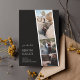 Présentant notre fascinant mariage "Capture Love" Save the Date Card, un mélange enchanteur de nostalgie du stand photo et d'esthétique contemporaine. Ce design unique résume l'essence de votre voyage ensemble, invitant les proches à marquer leur calendrier pour votre journée spéciale. L'arrière - plan dégage un air d'allure vintage, qui rappelle les bandes classiques des cabines de photos qui renferment des souvenirs chéris. Les tons modernes de noir et blanc forment le fondement de cette palette de couleurs tendance, évoquant les sentiments de romantisme et d'intemporalité. Ces teintes s'entrelacent gracieusement, créant un cadre harmonieux qui accentue le point central de la carte. Au premier plan, un agencement astucieux de vos photos fiançailles préférées occupe le devant de la scène. Chaque cadre est un moment chéri figé dans le temps, invitant les invités à partager votre joyeux voyage. L'appariement des polices pour le texte est une incarnation de l'élégance moderne. Les principaux détails, tels que les noms du couple et la date du mariage, sont joliment écrits dans une police serif sophistiquée. Ceci vient compléter le texte de support, qui utilise une police de calligraphie élégante. La combinaison reflète non seulement la dualité de votre histoire d'amour, mais ajoute également une touche de raffinement au design général.