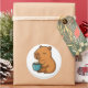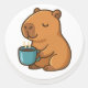 A cute kawaii capybara holding a warm coffee mug, illustrated in a glossy, vibrant style on a clean white background. Perfect for planners, journals, laptops, water bottles, and anyone who loves cozy animal stickers and coffee-themed designs.