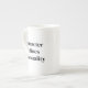 jolie porcelaine, bonne dimension effet brillant bien dans l'ensemble. Le motif et les couleurs sont réussis.Je trouve néanmoins dommage de ne pas occuper tout l'espace avc le motif car la partie rouge au dos de la tasse est trop présente et pas intéressante visuellement.