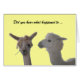 Alpacas gossiping to each other. "Did you hear what happened to ..." on front. Inside, customize with a name and event/happening for your announcement.