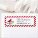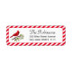 Cardinal mignon debout sur les feuilles Holly avec étiquettes de adresse à cadre rayé rouge et blanc. Des images peuvent être customisées.