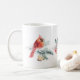Cette conception présente une aquarelle illustrant le cardinal Bird and Red Robin reposant sur des branches de pin recouvertes de neige.
