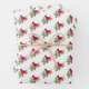 Trois feuilles de papier d'emballage de Noël avec un motif moderne et festif sur un arrière - plan blanc. Feuille 1 : fermeture d'un cardinal rouge sur une branche sainte. Feuille 2 : feuilles verts saints avec une couleur or et des baies rouges. Feuille 3 : cardinal rouge assis sur une branche charnue incurvée avec des baies.