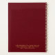 Restez organisé et augmentez votre image professionnelle avec notre planificateur Spiral personnalisé, avec un design cardinal en cuir rouge raffiné qui allie sophistication et fonctionnalité. Un espace carré personnalisable sur la couverture vous permet d'afficher en évidence votre logo d'entreprise sur une texture dorée tandis que deux lignes supplémentaires de texte modifiable offrent de la place pour votre nom d'entreprise et votre slogan, assurant ainsi votre marque avant et centre. En haut, vous avez de l'espace pour du texte supplémentaire. Cet élégant planificateur est parfait pour les professionnels et les petites entreprises qui cherchent à faire une impression durable. Il est idéal pour les avocats, les cabinets juridiques, les comptables, les consultants, les agents immobiliers, les planificateurs financiers, les cabinets médicaux, les agences d'assurance, les architectes, les designers et les éducateurs. Qu'il s'agisse de planification, de réunions de clients ou de planification stratégique, ce planificateur orienté vers la spirale combine style et organisation pour soutenir le succès de votre entreprise. Conçu pour la pratique et l'image de marque, le planificateur Spiral Personnalisé fait un excellent bureau essentiel ou un cadeau promotionnel réfléchi pour les professionnels qui cherchent à impressionner les clients et les collègues.