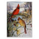 Une paire de cardinaux du nord (cardinalis de Cardinalis) est perché sur un rosier dans cette scène hivernale. Une illustration vintage à partir de 1915.