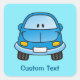 Voiture de dessin animé bleu souriant. Couleur arrière - plan personnalisée. Texte personnalisé.