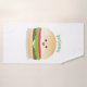 Ce mignon hamburger heureux est lumineux et adorable. Beaucoup de plaisir gourmand dessiné dans un joyeux style de dessin animé.