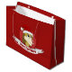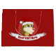 Sac cadeau avec une illustration d'un lion mignon avec casquette Père Noël rouge; décoration géniale pour les vacances de Noël, design de modèle modifiable avec champ personnalisé pour votre propre texte, illustré par Radka Kavalcova
