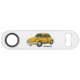 Une voiture classique jaune joyeuse. Dessiné dans un style de dessin animé amusant.