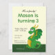 Invitations de l'étiquette d'imaginaire avec illustration de dragon vert mignon; invitation d'anniversaire sur le thème de l' illustrée par Maxi Harmony