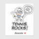 Joli lecteur de tennis dessin sur vinyle autocollant personnalisé. Autocollant découpé Contour pour joueur et fans. Tennis Rocks !