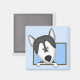 Ce grand dessin animé gris et blanc Alaskan Malamute a la tête collée de l'intérieur d'un cadre d'image en pointillés bleus, ses jambes se reposant tranquillement le long de la corniche. Aimant Malamute de l'Alaska extrêmement mignon est parfait pour toute personne qui adore ce gros chien de traîneau.