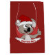 Sac-cadeau personnalisable avec illustration d'une tête de petit koala mignon avec casquette Père Noël; décoration géniale pour les vacances de Noël, design modèle modifiable avec champ personnalisé pour votre propre texte, illustré par Radka Kavalcova