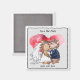 Voici un dessin humoristique, à part l'aimant dateur de deux mignons hamsters, les yeux fermés dans l'amour romantique, à leur danse mariage. Ils sont en face d'un coeur rose aquarelle géant. Vous pouvez éditer le coeur, ainsi que le contour du carré, et également créer du texte personnalisé. Vous pouvez également effacer la texture arrière - plan de la toile (et choisir de mettre dans une couleur arrière - plan ou télécharger une photo de votre propre texture arrière - plan de tissu) Modifier la date de texte à votre propre date spéciale de dire que je le fais. Pour plus d'options, cliquez sur le bouton customiser. Modifiez la police et les couleurs du texte, redimensionnez les éléments et utilisez l'onglet Options en haut pour choisir un aimant rond de différentes tailles.