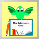 Customisez cette affiche personnalisée de classe d'un oiseau de dessin animé sur une bannière blanche imprimée au premier plan avec le nom de l'enseignant, le crayon et les livres. La couleur du texte et de l'arrière - plan peut être modifiée.