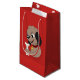 Sac en papier avec design avec illustration d'un mignon petit chiot brun avec un os; illustré par Radka Kavalcova / MaxiHarmony