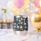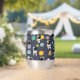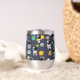 Graphique de clipart astronaute, Espace extra-atmosphérique : astronaute tenant ballon comme une planète, une fusée, étoiles, icône OVNI, icône satellite spatial, planète Saturne, vaisseau spatial, et d'autres. Sur Oxford Blue (bleu marine) arrière - plan.