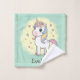 Ce linge de toilette pour filles adorable et personnalisé présente une mignonne licorne avec une crinière et une queue d'arc-en-ciel pastel, une corne dorée pétillante, et des accents de coeur doux, dressés contre un arrière - plan jaune et turquoise doux avec des coeurs et des étoiles dispersés.