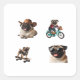 Voici le Carlin chien 4-Pack Sticker Set! Cet adorable carlin est en rouleau, littéralement ! Surveillez son évolution en cow-boy, votre passage dans les rues en mini-vélo, vos rochers de skateboard avec flair et vos vibes cool en lunettes de soleil design. Une dose compacte de rire et de charme induits par le carlin pour tous vos effets !