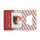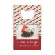 Un ouvre-bouteille avec une adorable photo d'un chiot carlin qui dort en portant un chapeau santa. Joyeux Noël est écrit sur la bande de son casquette, dans une police manuscrite branchée. Une bordure grinçante avec des lumières de Noël colorées entoure le cadre de cette jolie photo. L'arrière - plan est un motif à rayures sucre de canne festif en rouge blanc et vert. Personnalisez avec votre nom. La ligne de signature dit : Amour et Carlins, avec votre nom.