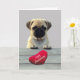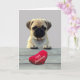 Carlin mignon Souhaitant Bonne Carte de voeux Anniversaire