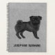 L'illustration originale de Destei d'un adorable chien de race Carlin couleur manteau noir. Le chien est debout et regarde vers le spectateur. La couleur arrière - plan est gris avec une texture décorative légère qui peut être enlevée, si vous le souhaitez. Il y a aussi une zone de texte personnalisable pour un nom ou un autre texte personnalisé.