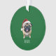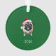 Célébrez une mémoire spéciale de vacances avec cet adorable ornement d'arbre de Noël! Avec un carlin mignon dans un chapeau de Père Noël, vous pouvez customiser l'année ou ajouter le nom de votre chien. Un délicieux souvenir pour les amateurs de carlins et un ajout festif à n'importe quel arbre !