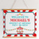 Venez un, venez tous ! Bienvenue à tous pour venir à la plus grande fête d'anniversaire sous le grand chapiteau avec nos modèles du carnaval de cirque. Ce panneau d'accueil pour le carnaval de cirque présente une tente arrière - plan de cirque rouge avec carrousel rouge et turquoise et une tente sur un motif d'affiche.