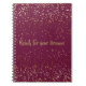 Carnet montré avec un graphique de petites étoiles en or sur un arrière - plan prune-vin avec la phrase "tendre vers vos rêves". Customisez cet objet et changez le nom à votre nom ou retirez le nom et achetez tel quel. Coloris de vin doré et prune.