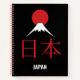 A bold, minimalist Japanese-style notebook featuring the iconic silhouette of Mount Fuji, the rising red sun (日の丸), and the kanji 日本 (Nihon / Japan) in striking red.