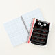This cute personalized 2026 calendar notebook shows the days of the week for each month on the belly of a mid-century modern black kitty cat. On the inside, these notebooks give you the ability to choose the type of blank paper you like, so you can decide if you want to keep a bullet journal, a travel diary, a yearly sketchbook, etc. With the addition of the yearly calendar cover, you'll be able to see the entire year at a glance. Made to look like retro 60s minimalist pop art, the cover design is made all in black, white and neon red with cut-out paper style typography. The design repeats on the back. Use the easy template to alter the text along the edge. Conquer the new year with this unique calendar notebook.