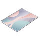 This is a captivating abstract artwork characterized by its soft, flowing lines and harmonious blend of pastel colors. The composition features organic, undulating shapes that gracefully interlock and overlap, creating a sense of gentle movement and fluidity. The primary colors include delicate blush pinks, serene sky blues, and soothing lavender purples, with subtle hints of mint green and cream. Fine, delicate white lines weave across and within some of the larger colored sections, adding intricate detail and visual texture without disrupting the overall minimalist aesthetic. The overall impression is one of calm, elegance, and modern artistry, making it an ideal design for a Notebooks & Journals Cover.