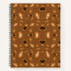 A spiral notebook with a brown cover featuring a repeating pattern of beer glasses, hops, bottles, and pretzels. The tones are warm, evoking a cozy, autumnal feel.