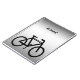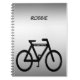 Ce carnet présente un design contemporain d'un motif abstrait d'une bicyclette noire sur un arrière - plan métallique argenté, gris et blanc. Le nom peut être customisé ou supprimé.