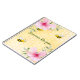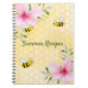 Jaune, arrière - plan blanc avec un motif de nid d'abeille. Décoré de fleurs de fleurs tropicales roses, d'hibiscus et de jolies bourdons. Le texte : Recettes d'été en vert écriture manuscrite. Parfait comme carnet pour vos recettes d'été.