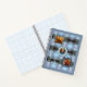 Voici un design unique de journal de carnet avec un collage de trois photos, avec chaque photo placée dans un cadre dessiné à la main. Vous pouvez ajouter vos propres images et noms pour créer un design customisé qui sera un souvenir pour de nombreuses années à venir. L'arrière - plan bleu abstrait est une photo d'une oeuvre d'art mixte originale qui a été transformée en motif sans soudure. Les images de chevaux peuvent être remplacées par n'importe quel animal de compagnie, ce qui en fait un design polyvalent.