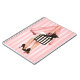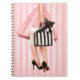Achats élégants de dame avec le chiot de bouledogue français sur l'arrière - plan rose rayé. Peint par l'artiste Maryline Cazenave.