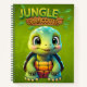 Personalize the back cover of this adorable "Jungle Welcome" notebook! Whimsical baby box turtle cartoon graphic animal character on a forest green background. This design is perfect for tortoise lovers, safari woodland nature wildlife fans, and anyone who enjoys cute, cozy zoo vibes.