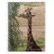 Une girafe affamée montrée sur un carnet de notes à spirale.