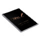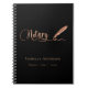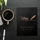 Un fond noir chic, orné d'une plume. Personnalisez et ajoutez un nom et un titre. Texte doré : Notaire