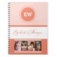 Carnet en spirale orange et blanc. Ajoutez les initiales, le nom et 4 photos.